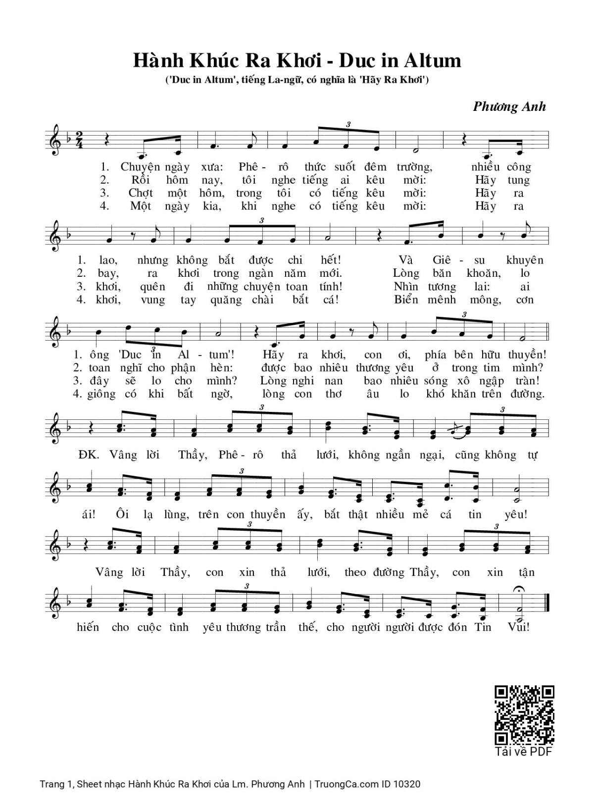 1. Chuyện ngày xưa: Phê-rô thức suốt đêm trường, nhiều công lao, nhưng không bắt được chi hết! Và Giê-su khiyên ông: 'Duc in Al-tum'! Hãy ra khơi, con ơi, phía bên hữu thuyền!