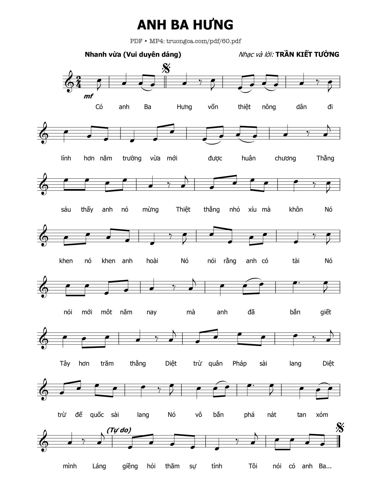 Trần Kiết Tường Có anh Ba Hưng Vốn thiệt nông dân Đi lính hơn năm trường [PDF] [Sheet] [Lyrics] [Mp4/Midi] [Story and comment]