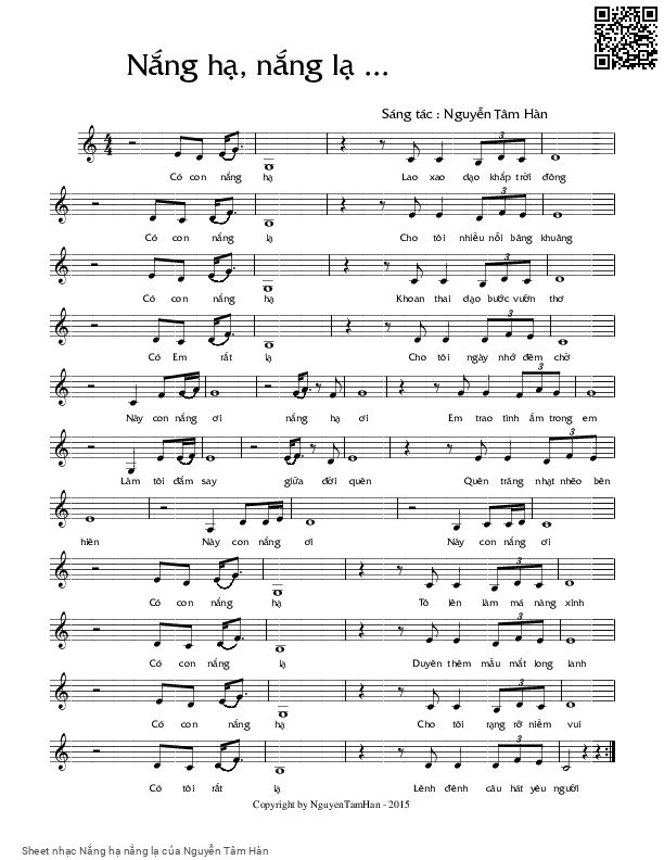 Nguyễn Tâm Hàn Có con nắng hạ Lao xao dạo khắp trời đông [PDF] [Sheet] [Lyrics] [Mp4/Midi]