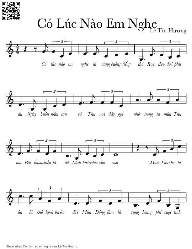 Lê Tín Hương Có lúc nào em nghe lá vàng buông tiếng thở [PDF] [Sheet] [Lyrics] [Mp4/Midi]