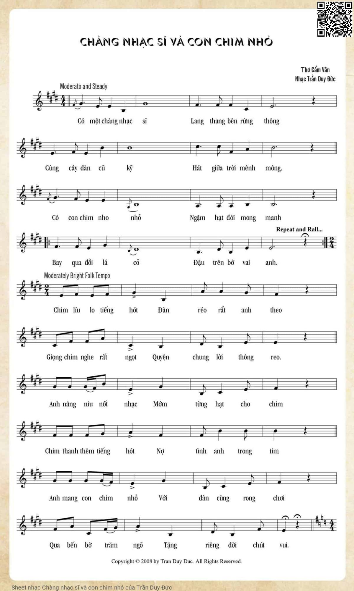 Trần Duy Đức Có một chàng nhạc sĩ Lang thang bên rừng thông [PDF] [Sheet] [Lyrics] [Mp4/Midi]