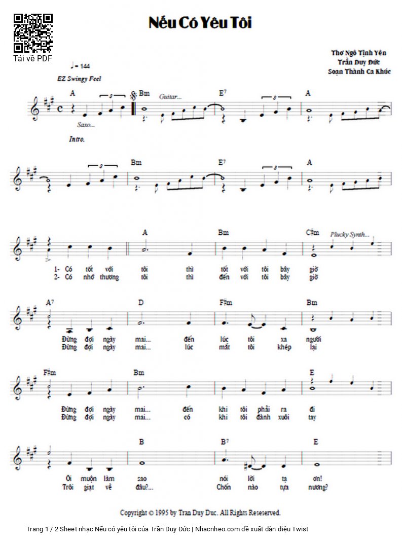 Trần Duy Đức Có tốt với tôi thì tốt với tôi bây giờ [PDF] [Sheet] [Lyrics] [Mp4/Midi] [Story and comment]