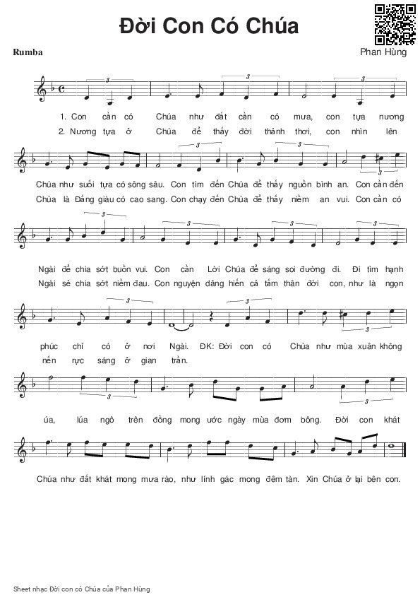 Transposition is the process of moving a song's melody and chords up or down in pitch by a constant interval. The direction of the transposition tool is indicated by a plus (+) sign for up and a minus (-) sign for down. Hover mouse over chords signs to see the chords chart of Đời con có Chúa song.