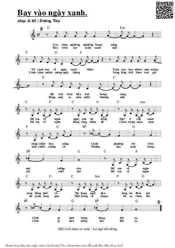 Dương Thụ Con chim nghiêng nghiêng trong nắng Vỗ cánh bay về ngày xanh thắm [PDF] [Sheet] [Lyrics] [Mp4/Midi]