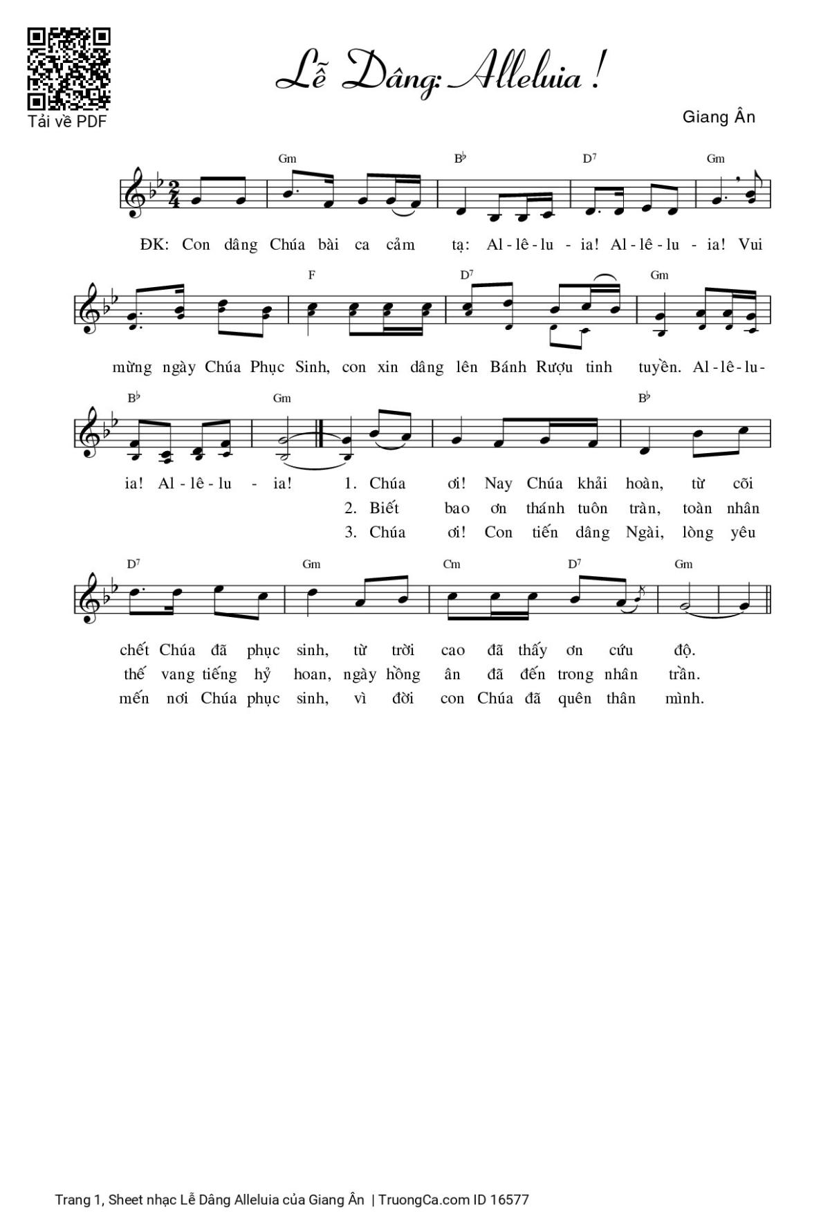 Điệp khúc. Con dâng Chúa bài ca cảm tạ: Al-lê-lu-ia! Al-lê-lu-ia! Vui mừng ngày Chúa Phục Sinh, con xin dâng lên bánh rượu tinh tuyền, Al-lê-lu-ia! Al-lê-lu-ia!