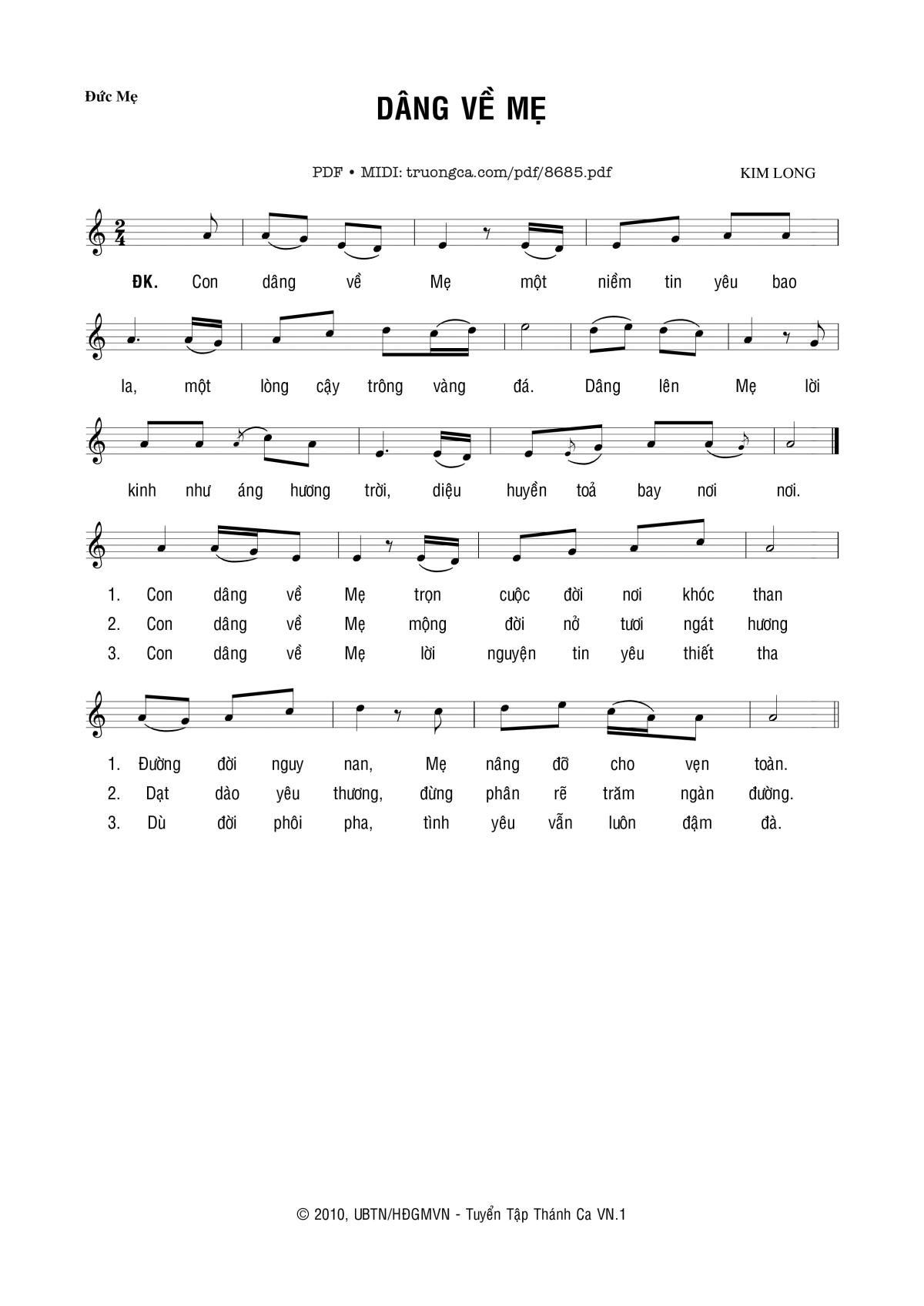 Kim Long Con dâng về Mẹ một niềm tin yêu bao la [PDF] [Sheet] [Lyrics] [Mp4/Midi]