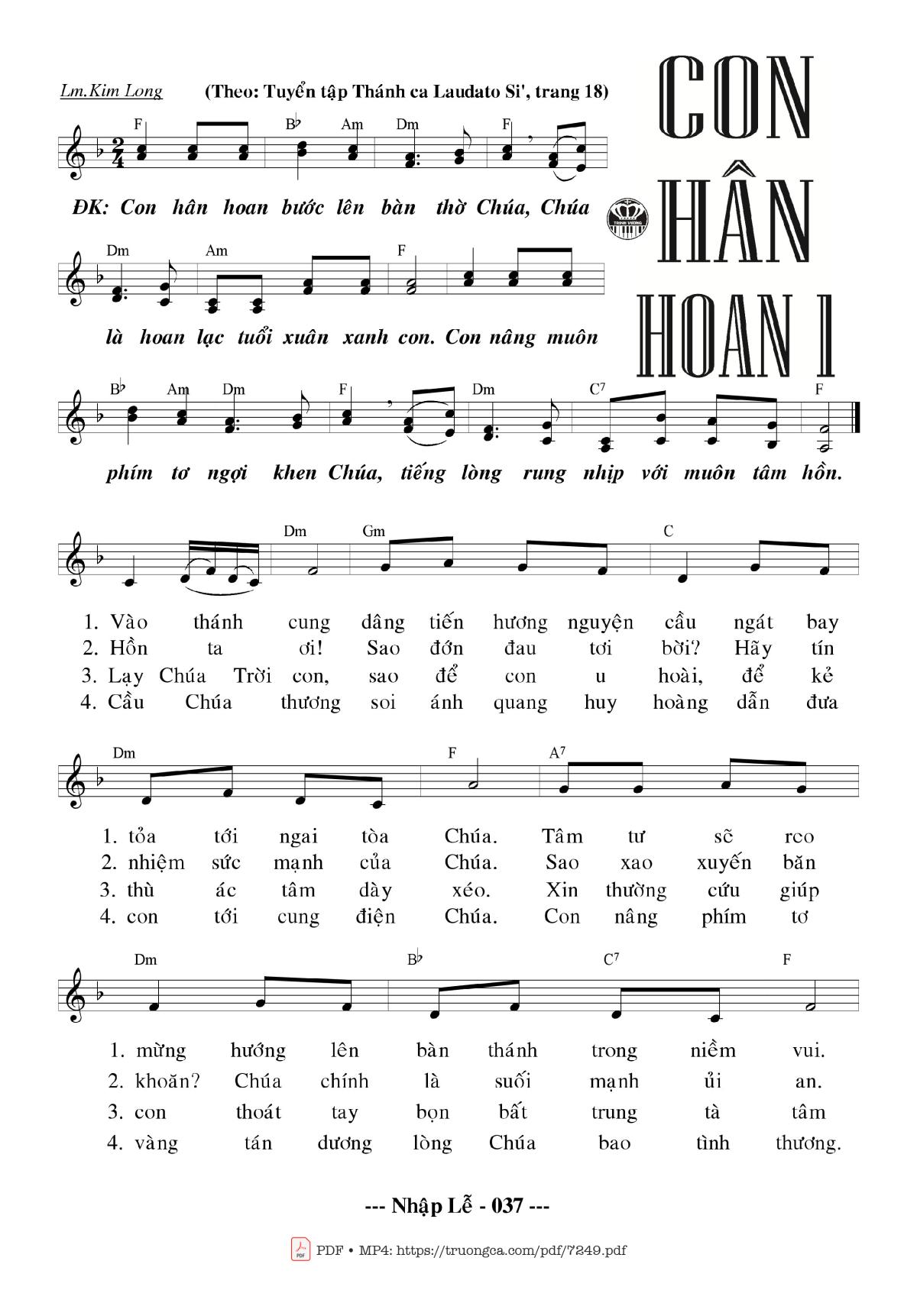 Kim Long Con hân hoan bước lên bàn thờ Chúa [PDF] [Sheet] [Lyrics] [Mp4/Midi]