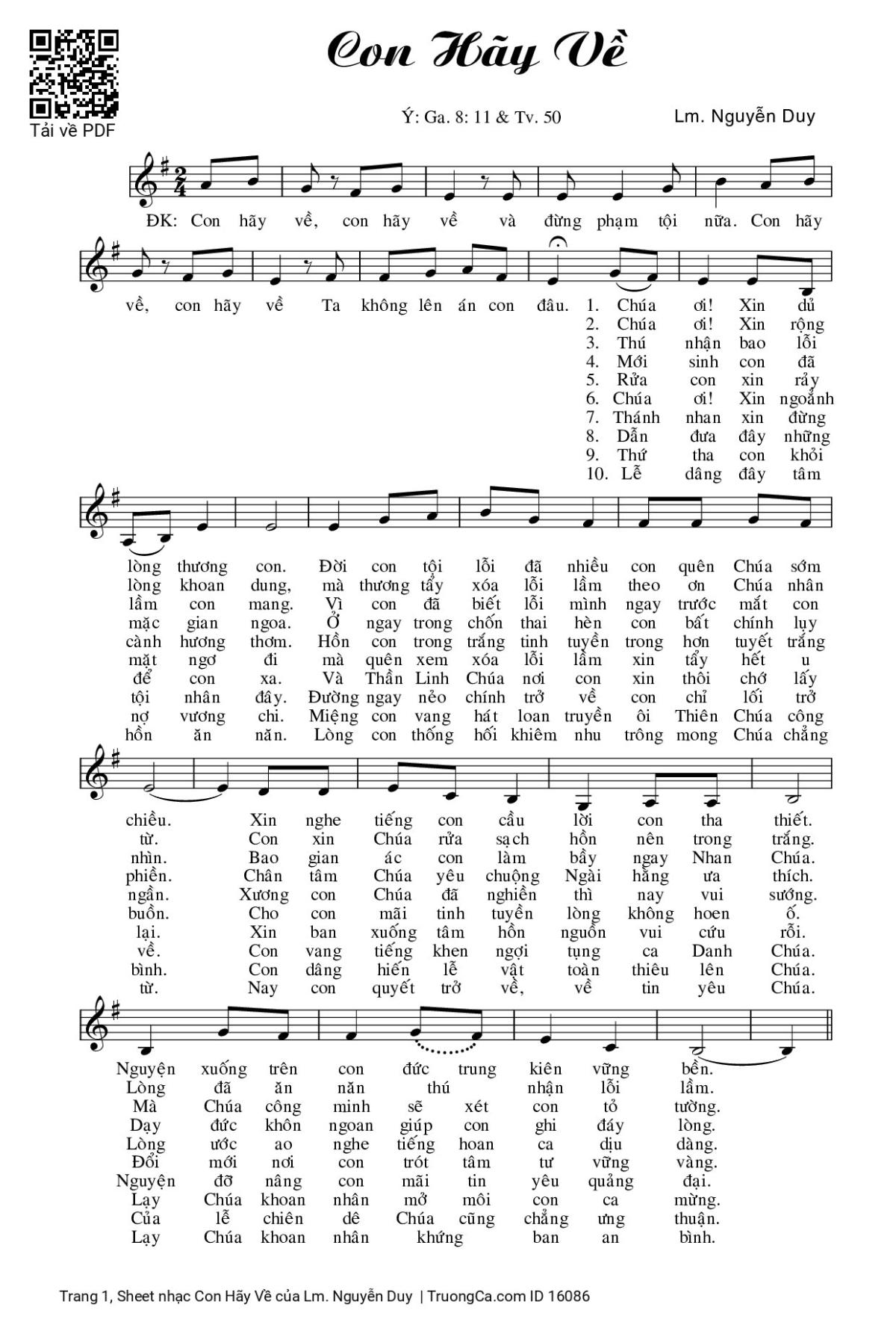Điệp khúc. Con hãy về, con hãy về và đừng phạm tội nữa. Con hãy về, con hãy về Ta không lên án con đâu.