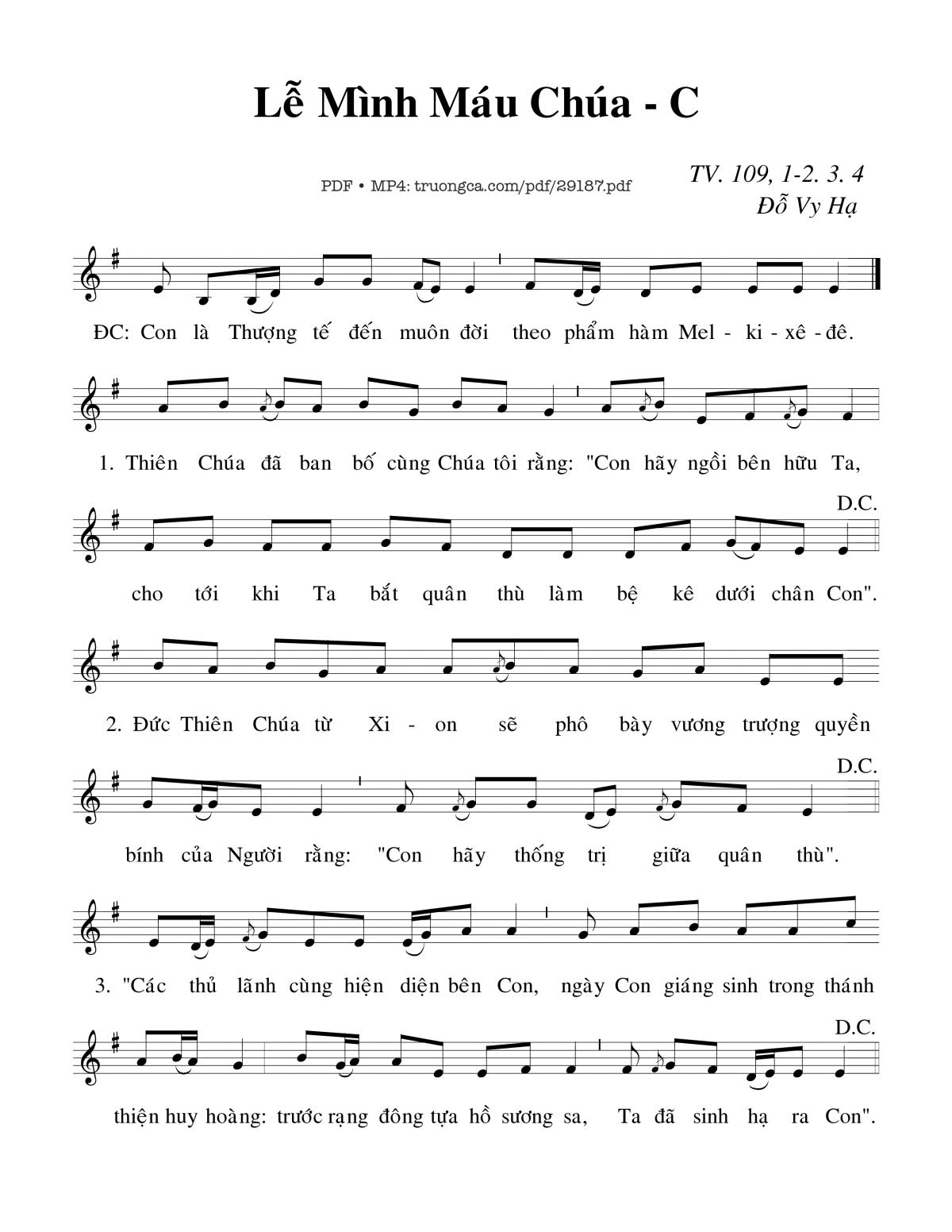 More similar sheets PDF Thánh Vịnh 109, Lễ Mình Máu Chúa. C: