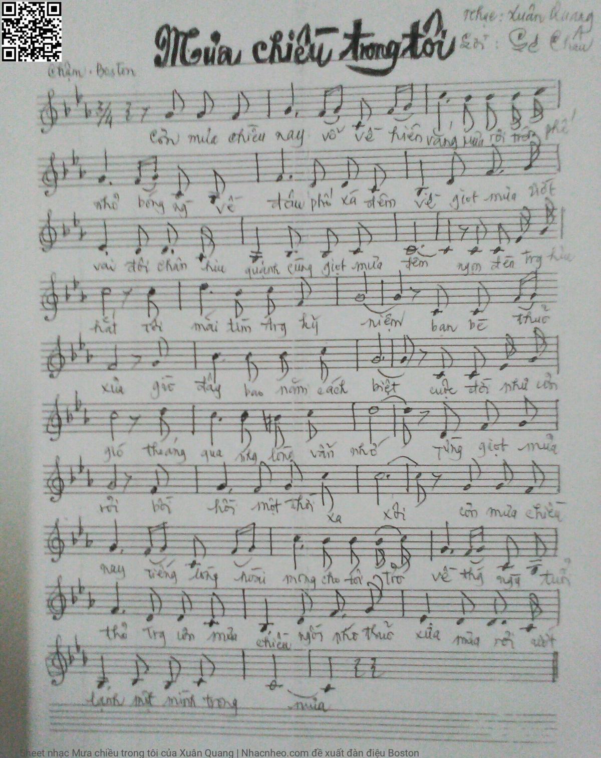 Xuân Quang Cơn mưa chiều nay vỗ về hiên vắng Mưa rơi trên phố nhỏ bóng người về đâu [PDF] [Sheet] [Lyrics] [Mp4/Midi]