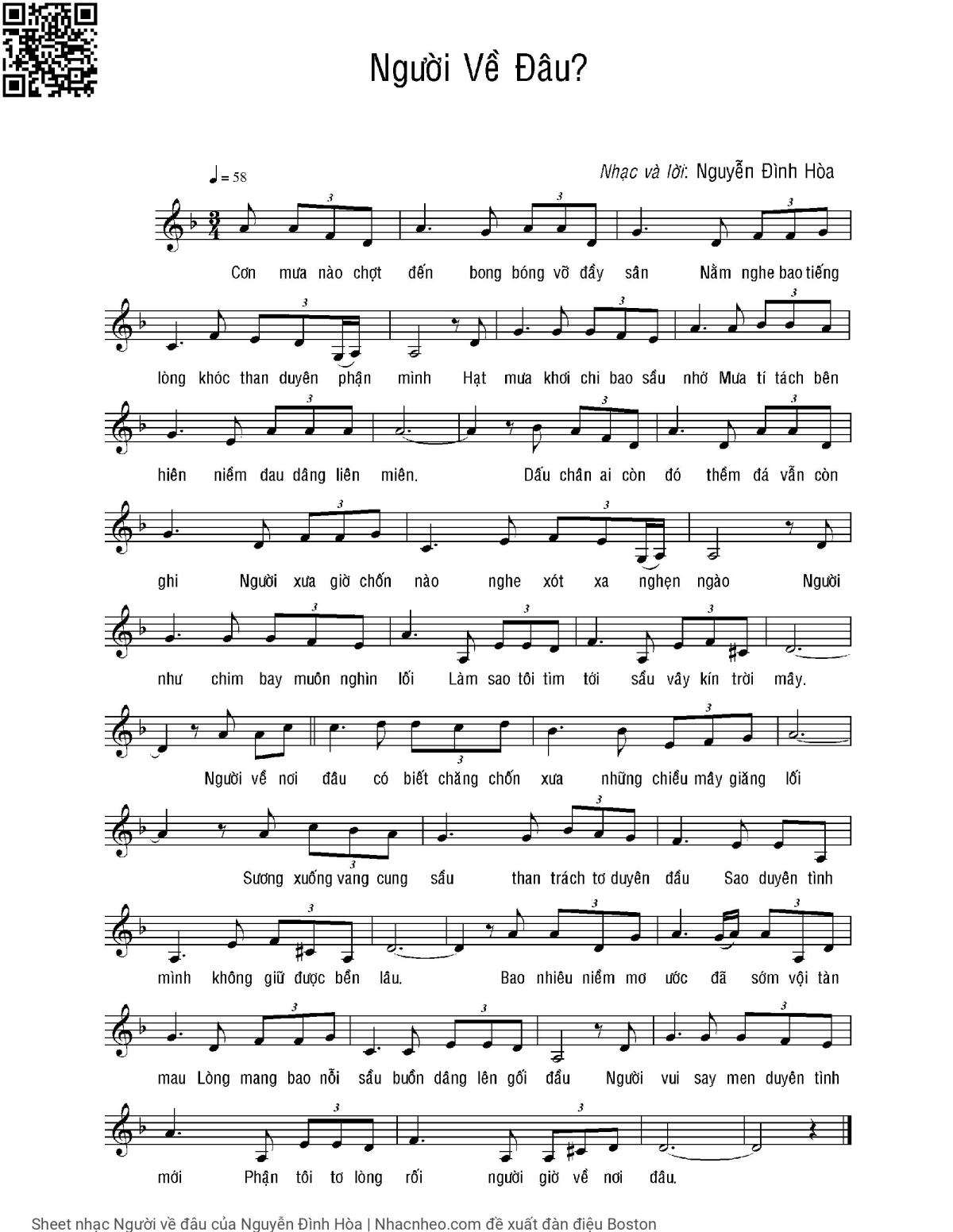 The Videos/audios Người về đâu by Nguyễn Đình Hòa were embed from Youtube, Musescore or the other 3rd links. Videos are subject to 3rd's copyright control and may be removed by YouTube's copyright rules and 3rd's policies or maybe included advertisements. If you cannot access to these songs, this mean that have been removed.