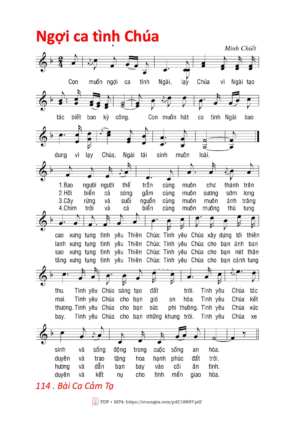 The Videos/audios Ngợi Ca Tình Chúa by Minh Chiết were embed from Youtube, Musescore or the other 3rd links. Videos are subject to 3rd's copyright control and may be removed by YouTube's copyright rules and 3rd's policies or maybe included advertisements. If you cannot access to these songs, this mean that have been removed.