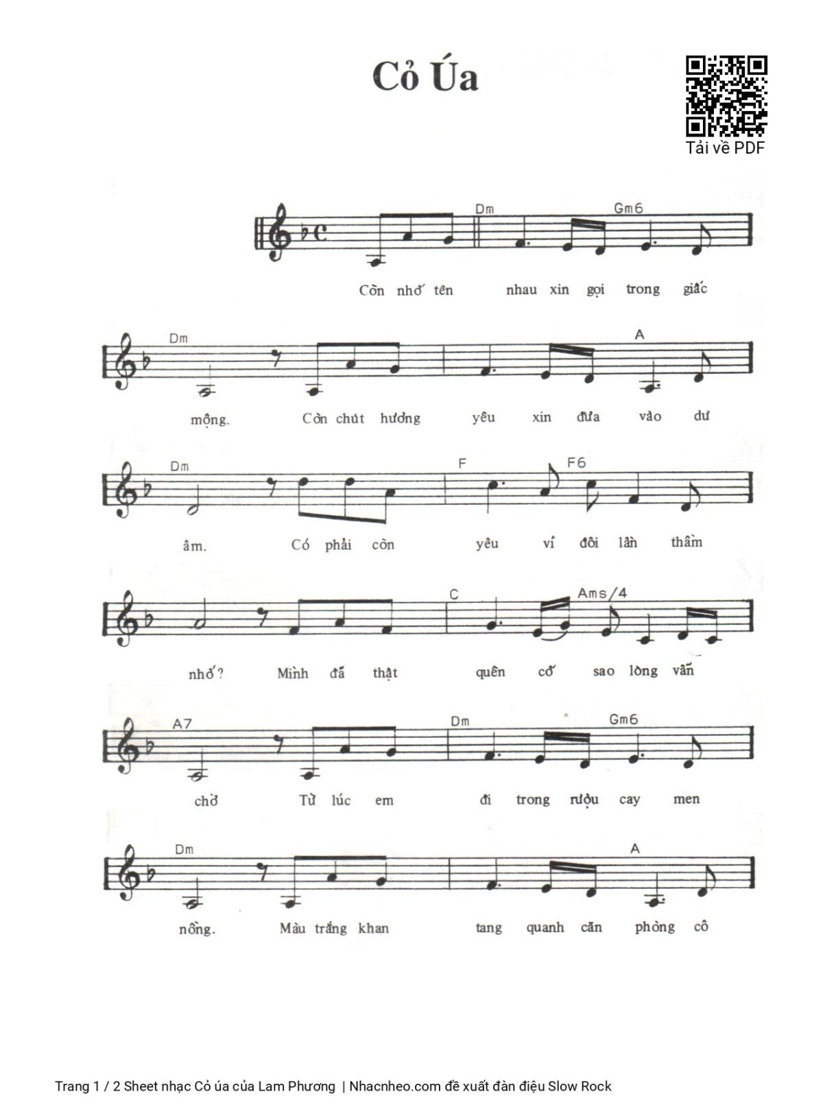 Transposition is the process of moving a song's melody and chords up or down in pitch by a constant interval. The direction of the transposition tool is indicated by a plus (+) sign for up and a minus (-) sign for down. Hover mouse over chords signs to see the chords chart of Cỏ úa song.