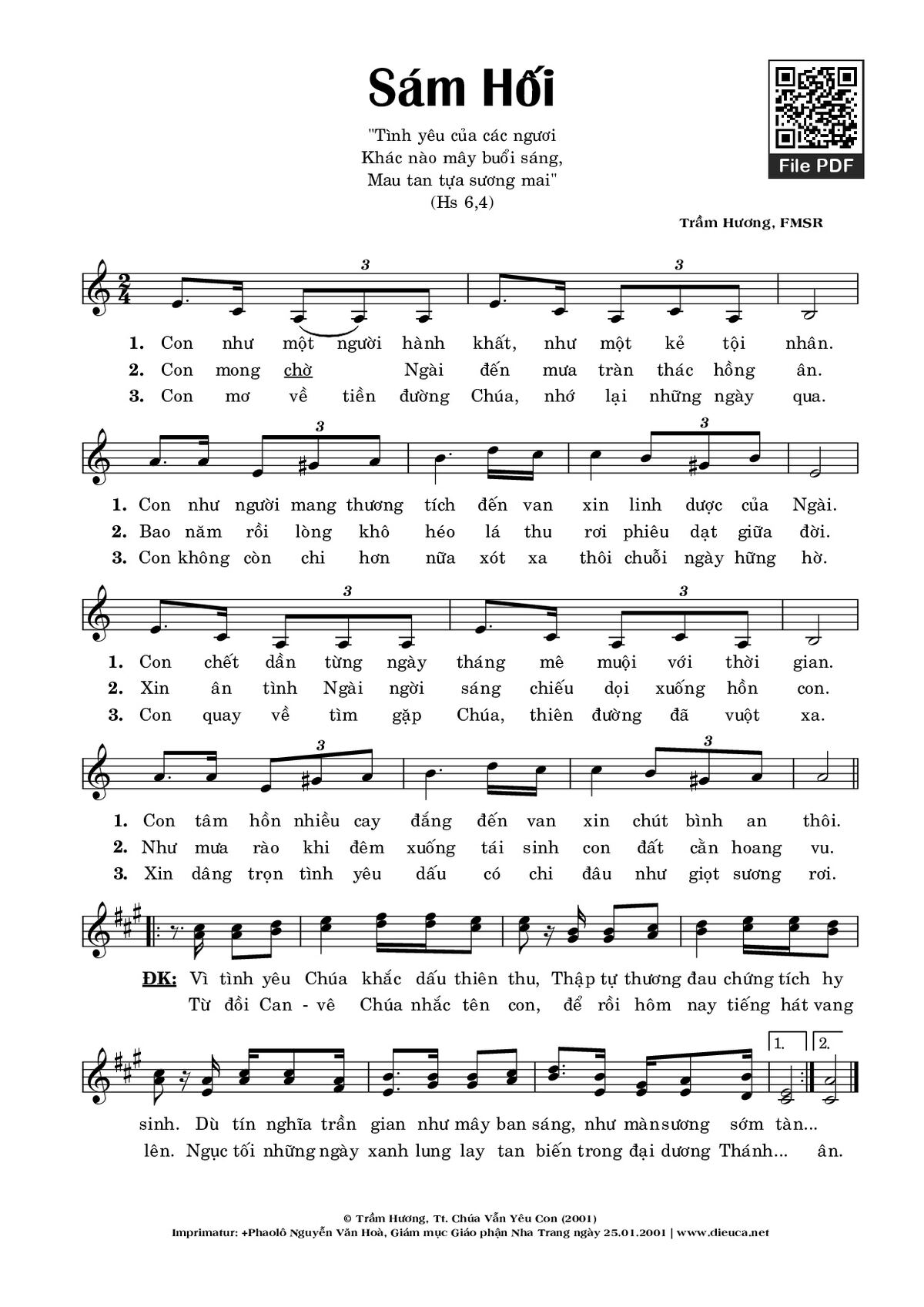 Trầm Hương Con như một người hành khất như một kẻ tội nhân [PDF] [Sheet] [Lyrics] [Mp4/Midi]