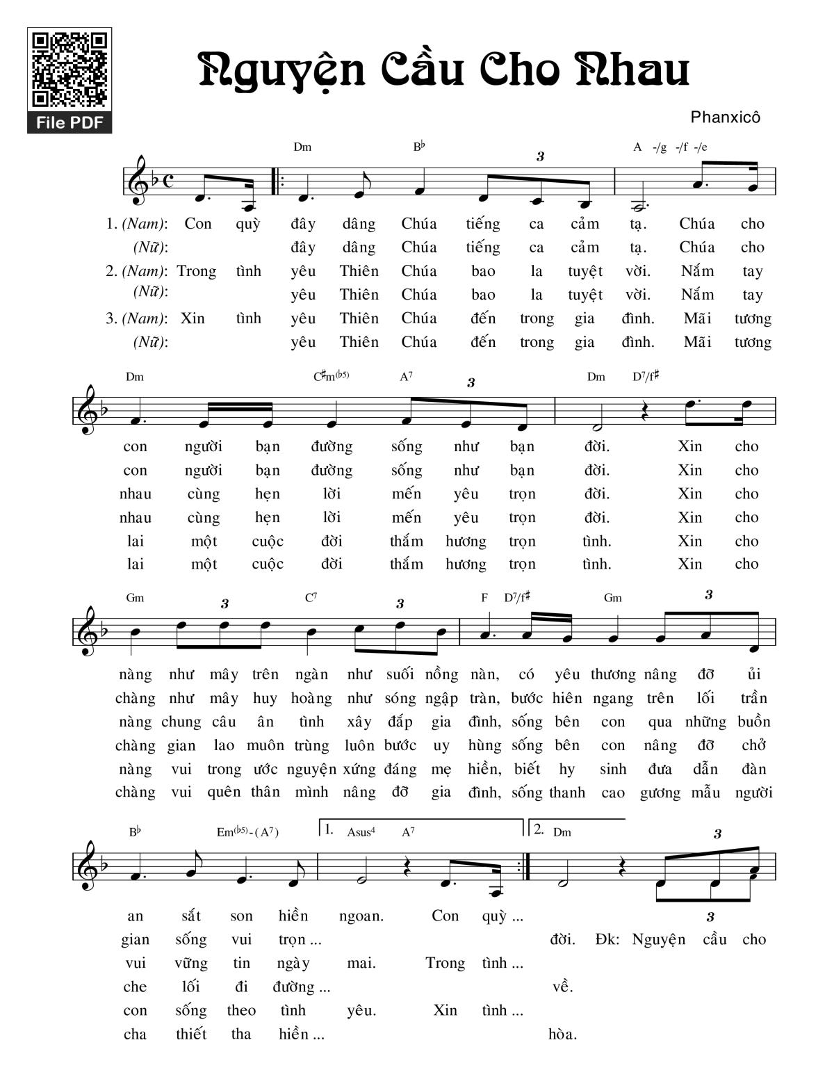 The Videos/audios Nguyện cầu cho nhau by Phanxicô were embed from Youtube, Musescore or the other 3rd links. Videos are subject to 3rd's copyright control and may be removed by YouTube's copyright rules and 3rd's policies or maybe included advertisements. If you cannot access to these songs, this mean that have been removed.