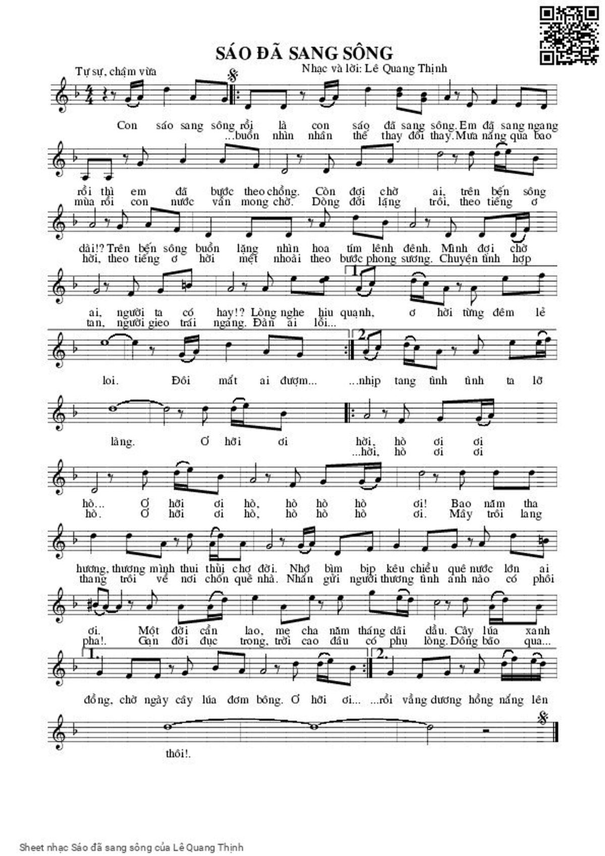 Lê Quang Thịnh Con sáo đã sang sông rồi là con sáo đã sang sông [PDF] [Sheet] [Lyrics] [Mp4/Midi]