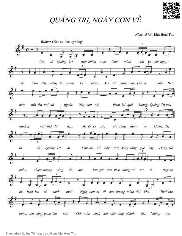 Mai Hoài Thu Con về Quảng Trị một chiều mưa Quê mình lam lũ của ngày xưa [PDF] [Sheet] [Lyrics] [Mp4/Midi]