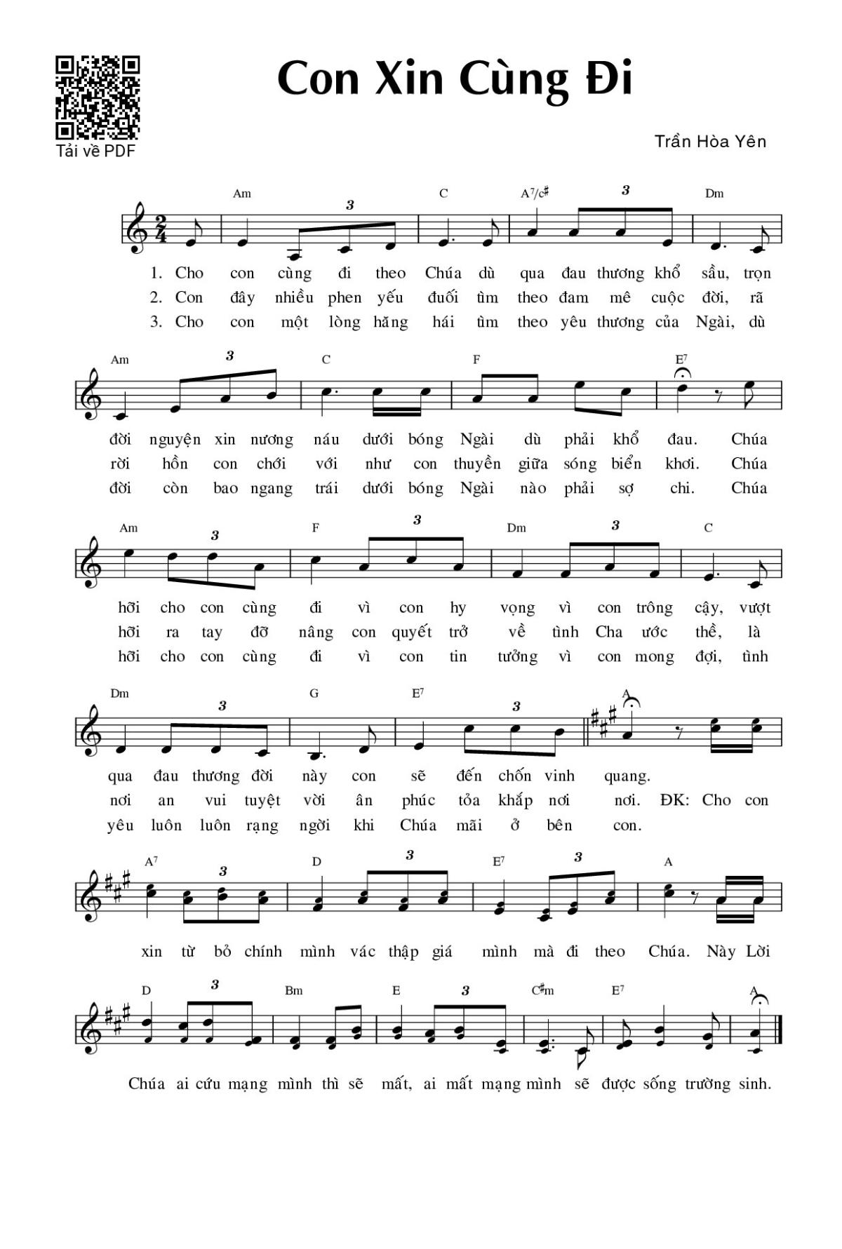 1. Con xin cùng đi theo Chúa dù qua đau thương khổ sầu, trọn đời nguyện xin nương náu dưới bóng Ngài dù phải khổ đau. Chúa hỡi cho con cùng đi vì con hy vọng vì con trông cậy vượt qua đau thương đời này con sẽ đến chốn vinh quang.