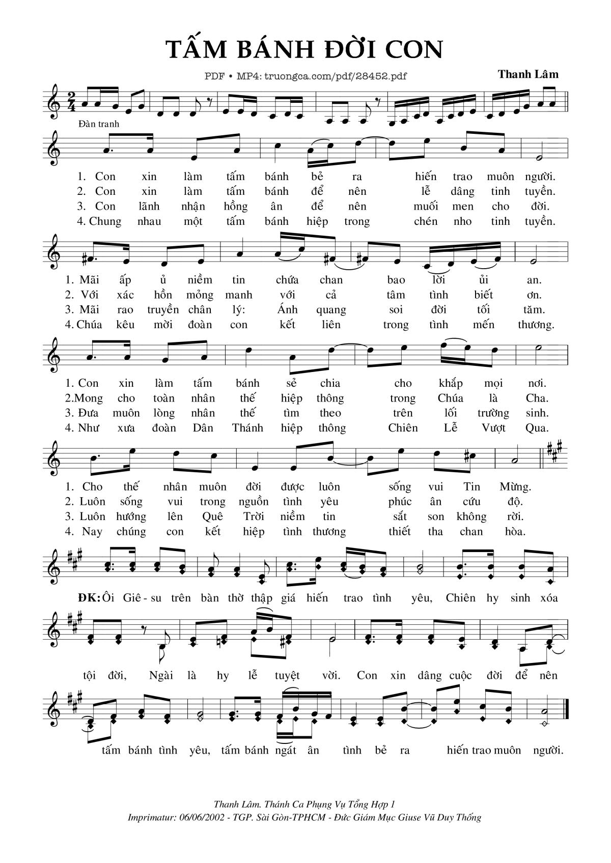 Thanh Lâm Song Mộc Con xin làm tấm bánh bẻ ra hiến trao muôn người [PDF] [Sheet] [Lyrics] [Mp4/Midi]