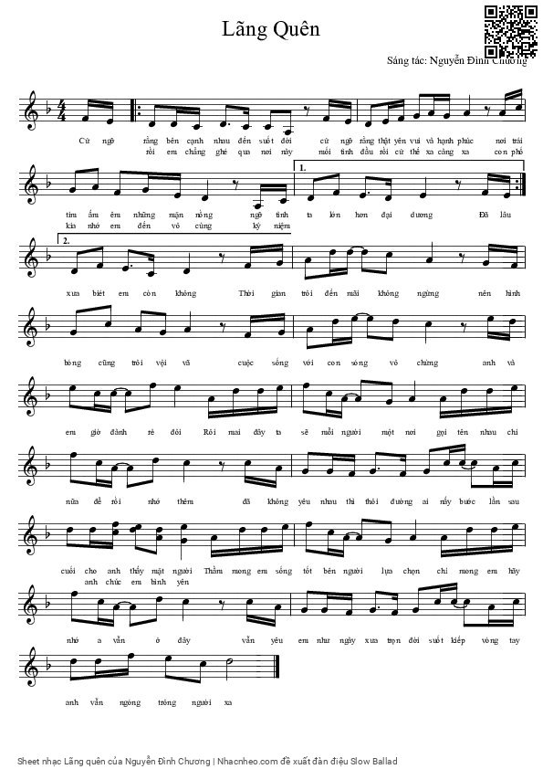 The Videos/audios Lãng quên by Nguyễn Đình Chương were embed from Youtube, Musescore or the other 3rd links. Videos are subject to 3rd's copyright control and may be removed by YouTube's copyright rules and 3rd's policies or maybe included advertisements. If you cannot access to these songs, this mean that have been removed.