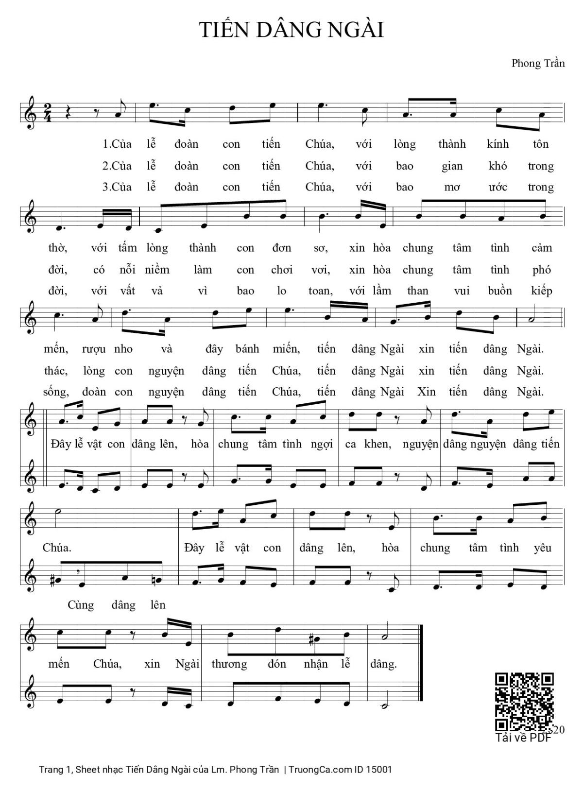 Điệp khúc. Đây lễ vật con dâng lên hòa chung tâm tình ngợi ca khen. Nguyện dâng, nguyện dâng tiến Chúa đây lễ vật con dâng lên hòa chung tâm tình yêu mến Chúa xin Ngài thương đón nhận lễ dâng