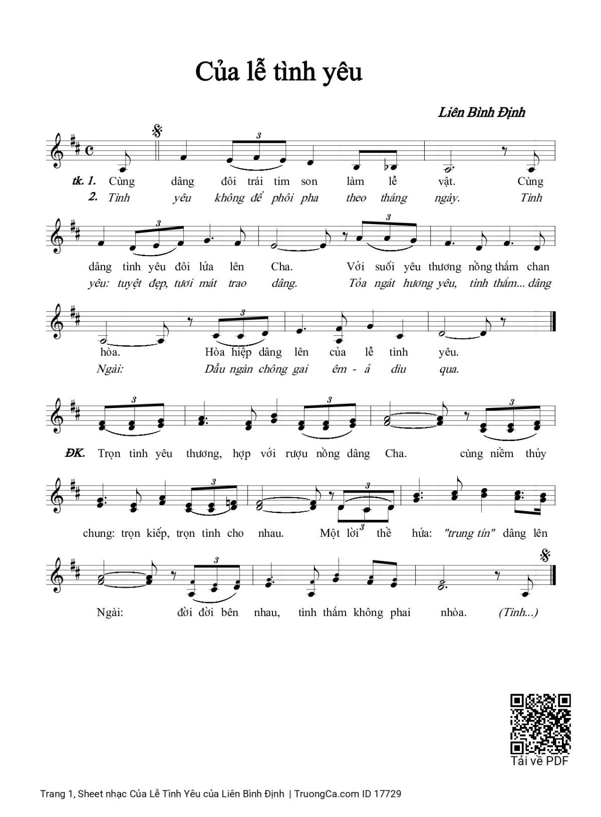 1/ Cùng dâng đôi trái tim son làm lễ vật. Cùng dâng tình yêu đôi lứa lên Cha. Với suối yêu thương nồng thắm chan hòa. Hòa hiệp dâng lên của lễ tình yêu.