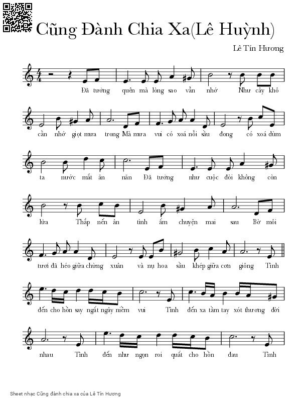 Lê Tín Hương Đã tưởng quên mà lòng sao vẫn nhớ Như cây khô cằn nhớ giọt mưa trong [PDF] [Sheet] [Lyrics] [Mp4/Midi]