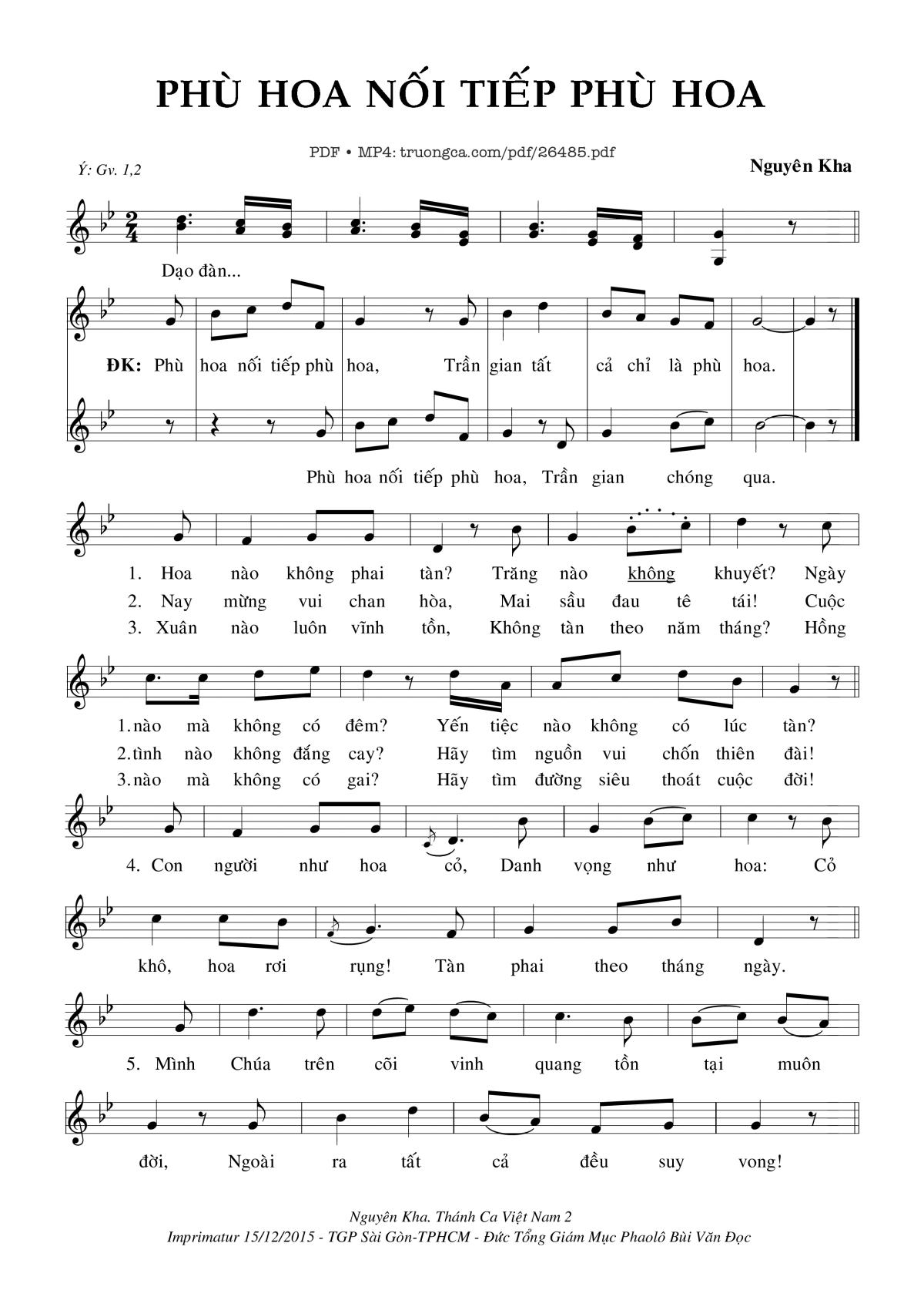 Nguyên Kha Dâng Lễ Thánh Ca Việt Nam Phù hoa nối tiếp phù hoa [PDF] [Sheet] [Lyrics] [Mp4/Midi]