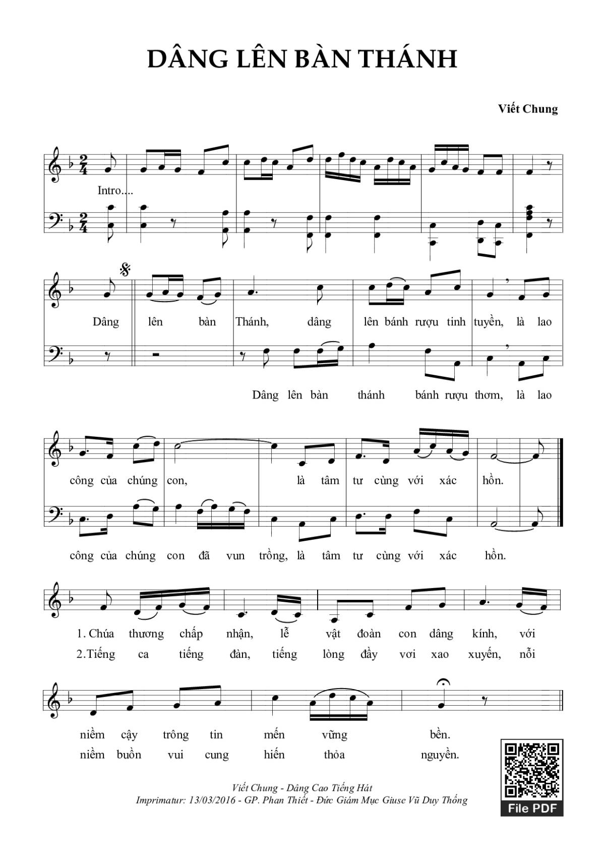 Viết Chung Dâng lên bàn thánh dâng lên bánh rượu tinh tuyền [PDF] [Sheet] [Lyrics] [Mp4/Midi]