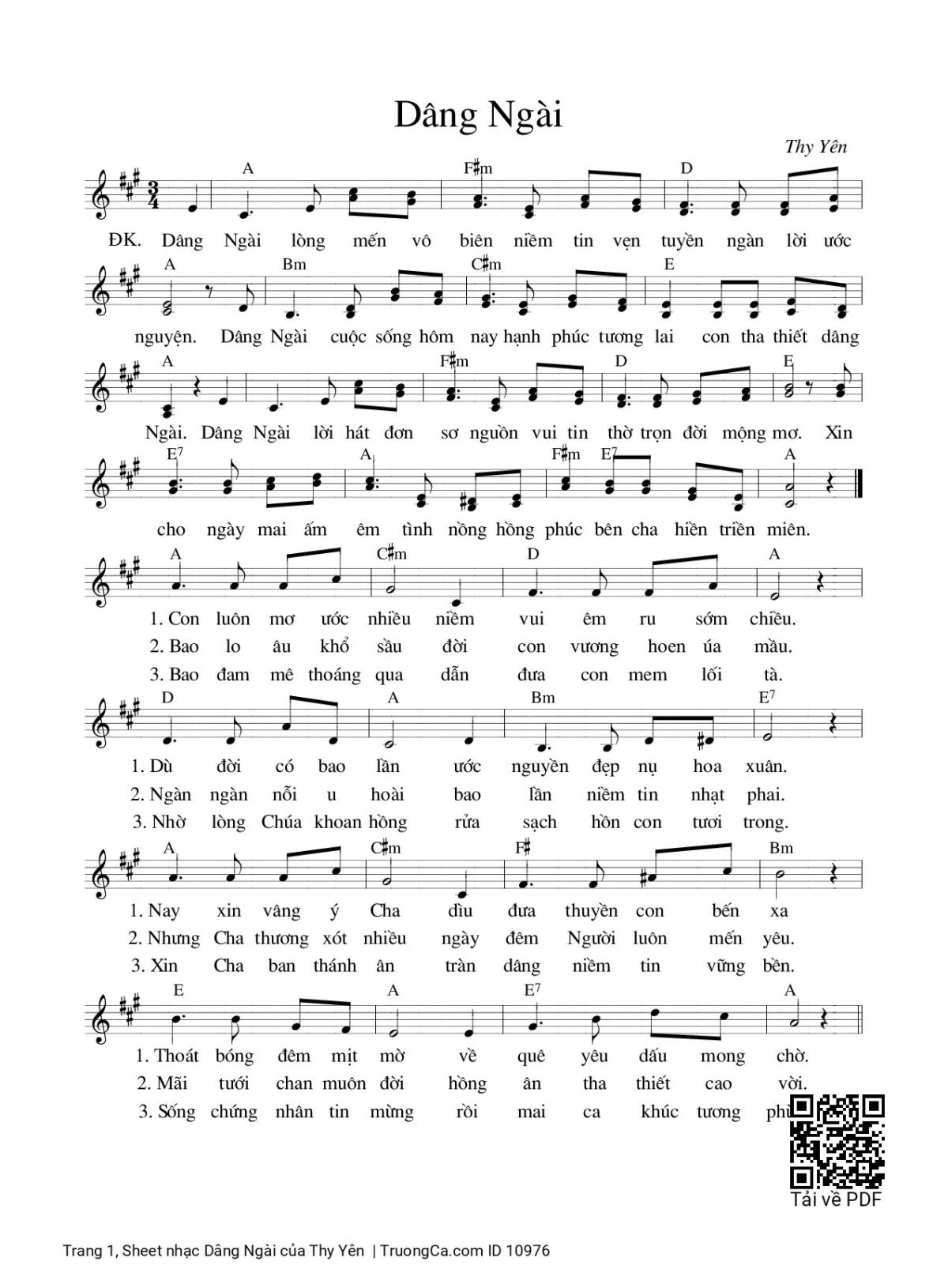 Thy Yên Dâng Ngài lòng mến vô biên niềm tin vẹn tuyền ngàn lời ước nguyện [PDF] [Sheet] [Lyrics] [Mp4/Midi]