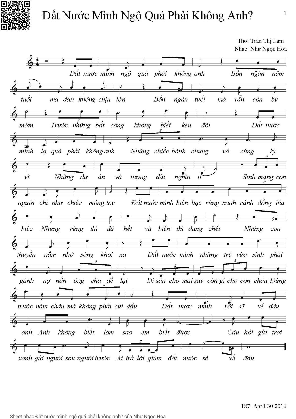Như Ngọc Hoa Đất nước mình ngộ quá phải không anh [PDF] [Sheet] [Lyrics] [Mp4/Midi]