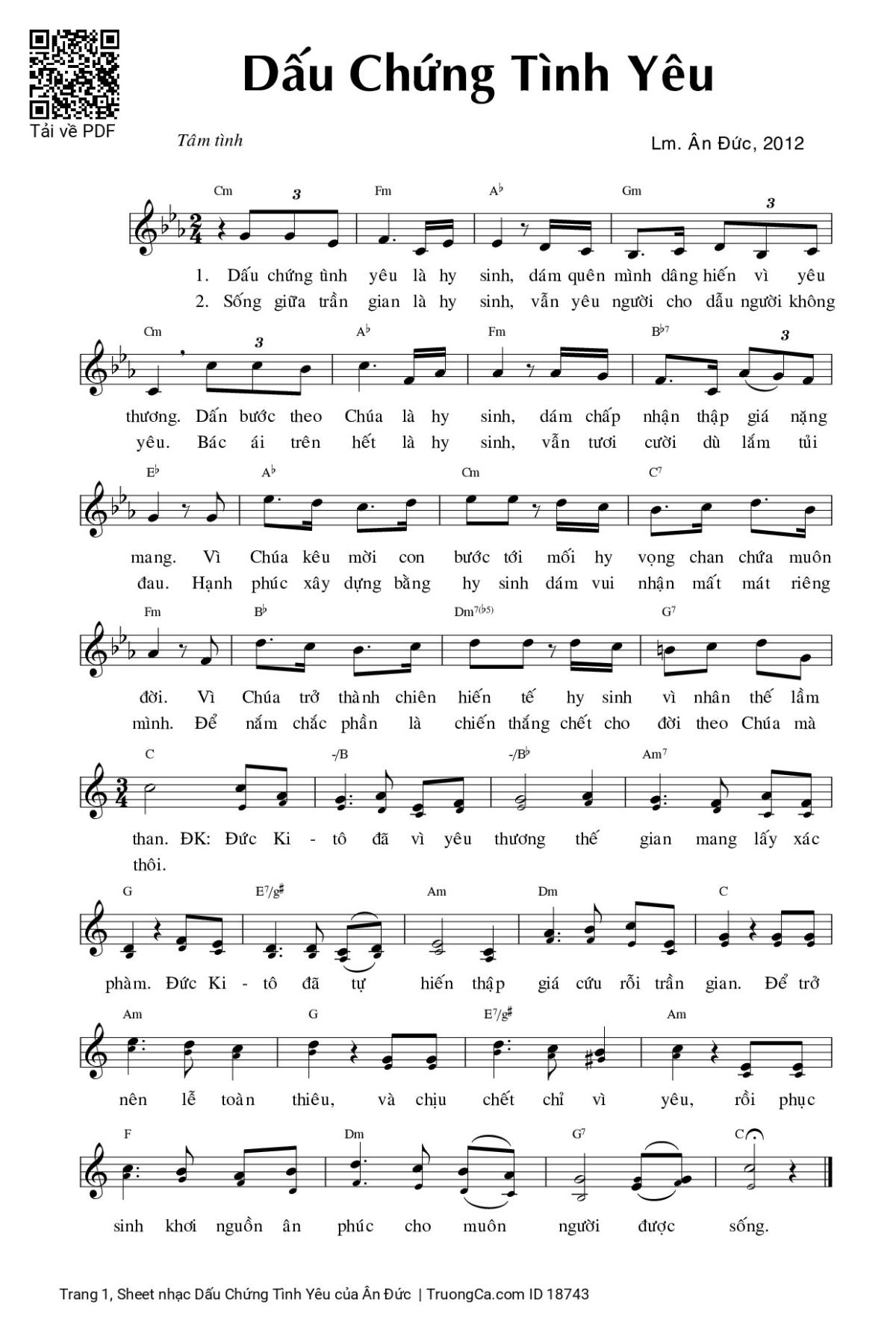 Ân Đức Dấu chứng tình yêu là hy sinh dám quên mình dâng hiến vì yêu thương [PDF] [Sheet] [Lyrics] [Mp4/Midi]