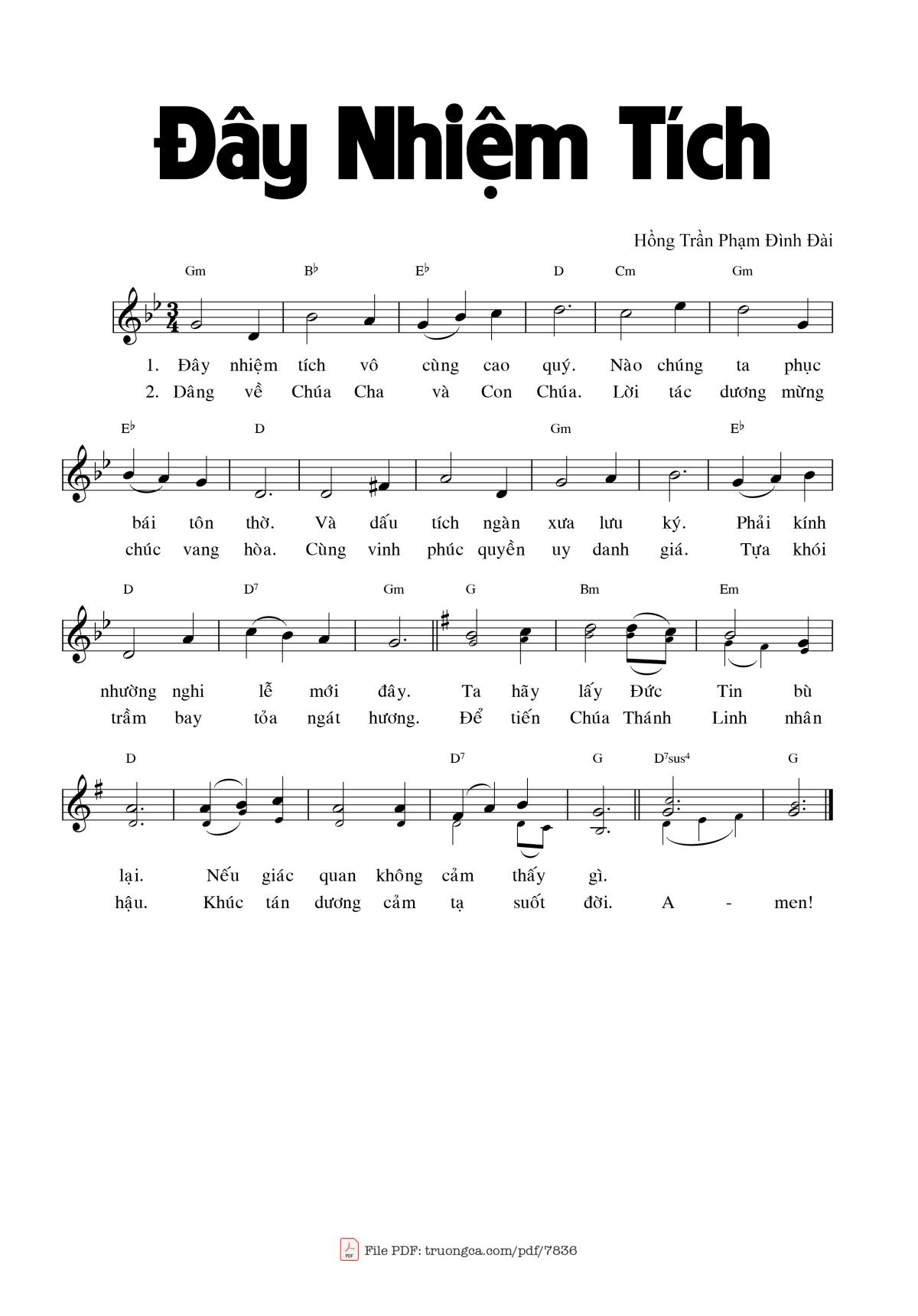 2 .Dâng về Chúa Cha và Con Chúa, Lời tán dương mừng chúc vang hòa. Cùng vinh phúc quyền uy danh giá. Tựa khói trầm bay tỏa ngát hương. Để tiến Chúa Thánh Linh nhân hậu. Khúc tán dương cảm tạ suốt đời Amen. (