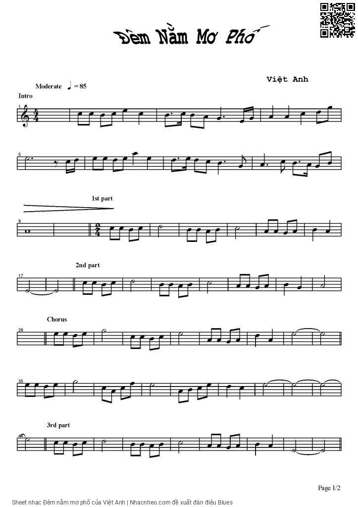 Việt Anh Đêm đêm nằm mơ phố trăng rơi nhòa trên mái [PDF] [Sheet] [Lyrics] [Mp4/Midi]