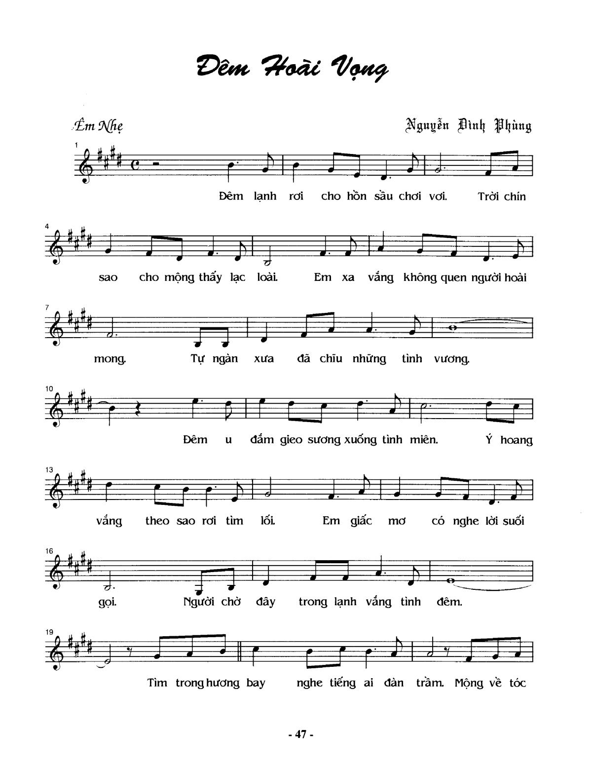 Nguyễn Đình Phùng Đêm lạnh rơi cho hồn sầu chơi vơi Trời chín sao cho mộng thấy lạc loài [PDF] [Sheet] [Lyrics] [Mp4/Midi]