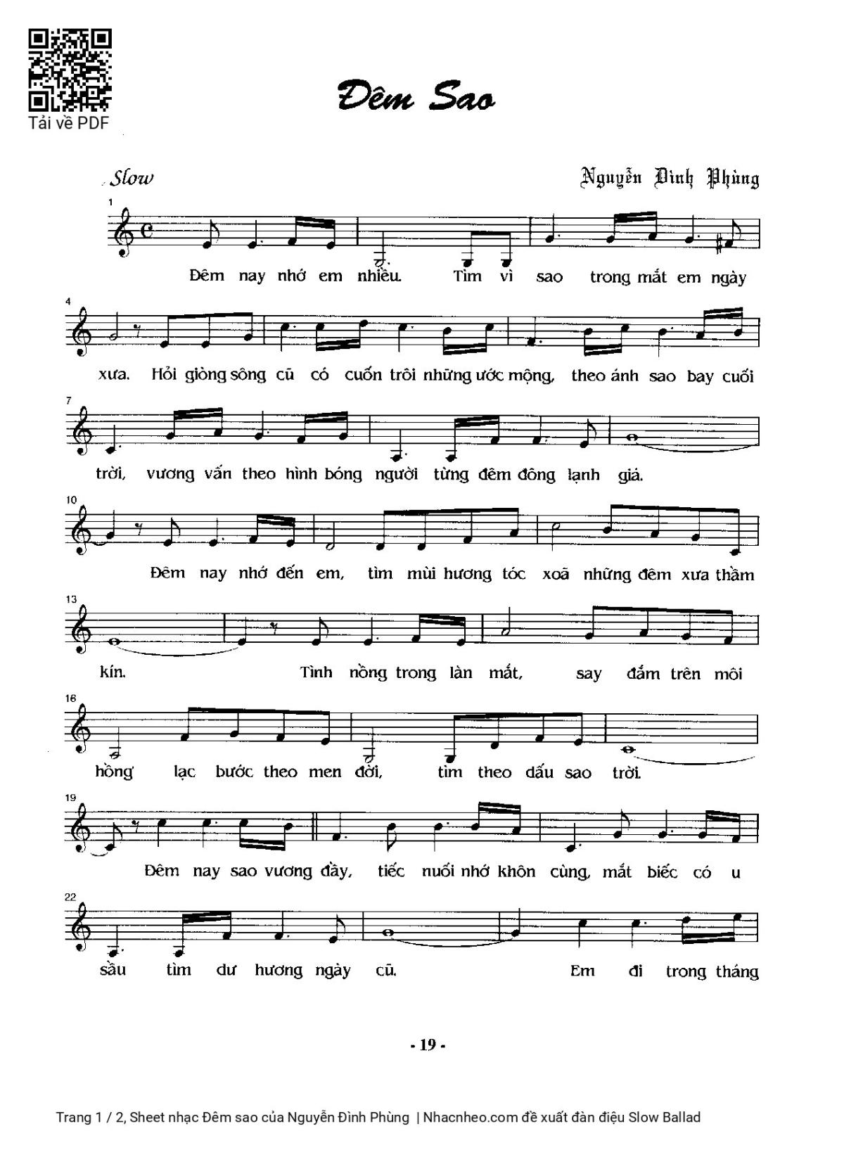 Nguyễn Đình Phùng Đêm nay nhớ em nhiều tìm vì sao trong mắt em ngày xưa [PDF] [Sheet] [Lyrics] [Mp4/Midi]