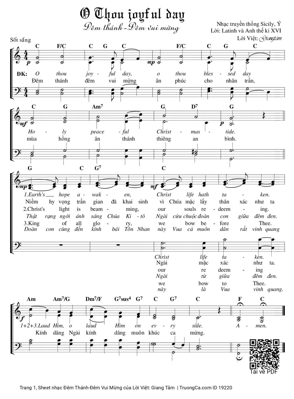 Lời Việt: Giang Tâm Đêm thánh đêm vui mừng ân phúc cho nhân trần mùa hồng ân thánh thiêng an bình [PDF] [Sheet] [Lyrics] [Mp4/Midi]