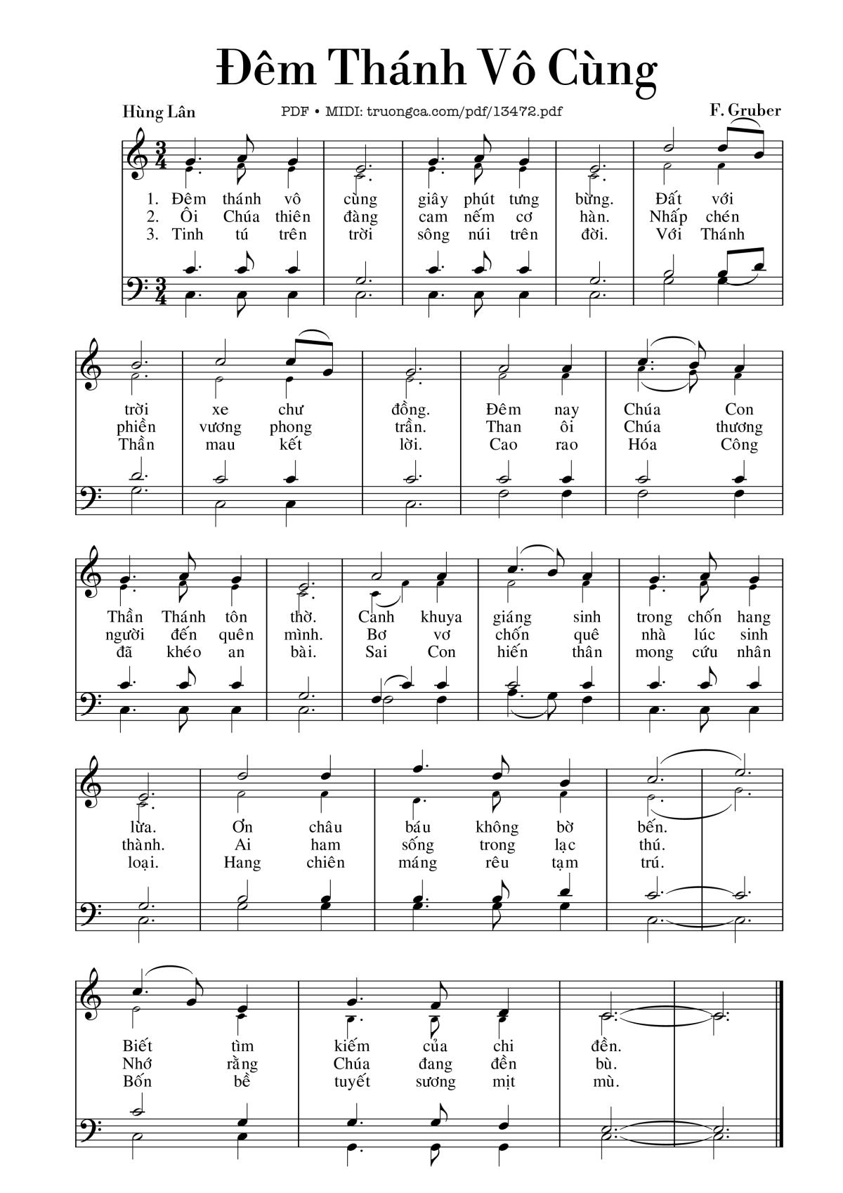 F. Gruber & Hùng Lân Đêm Thánh vô cùng Giây phút tưng bừng Đất với trời xe chữ đồng [PDF] [Sheet] [Lyrics] [Mp4/Midi]