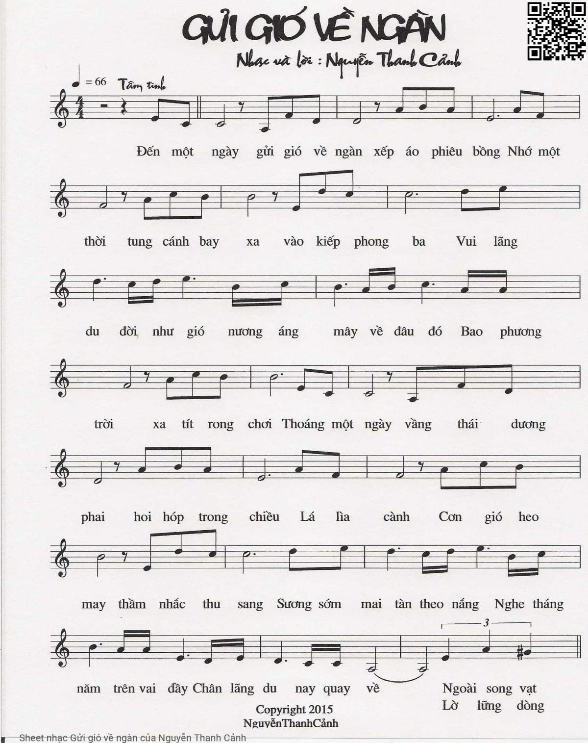 Nguyễn Thanh Cảnh Đến một ngày gửi gió về ngàn xếp áo phiêu bồng [PDF] [Sheet] [Lyrics] [Mp4/Midi]