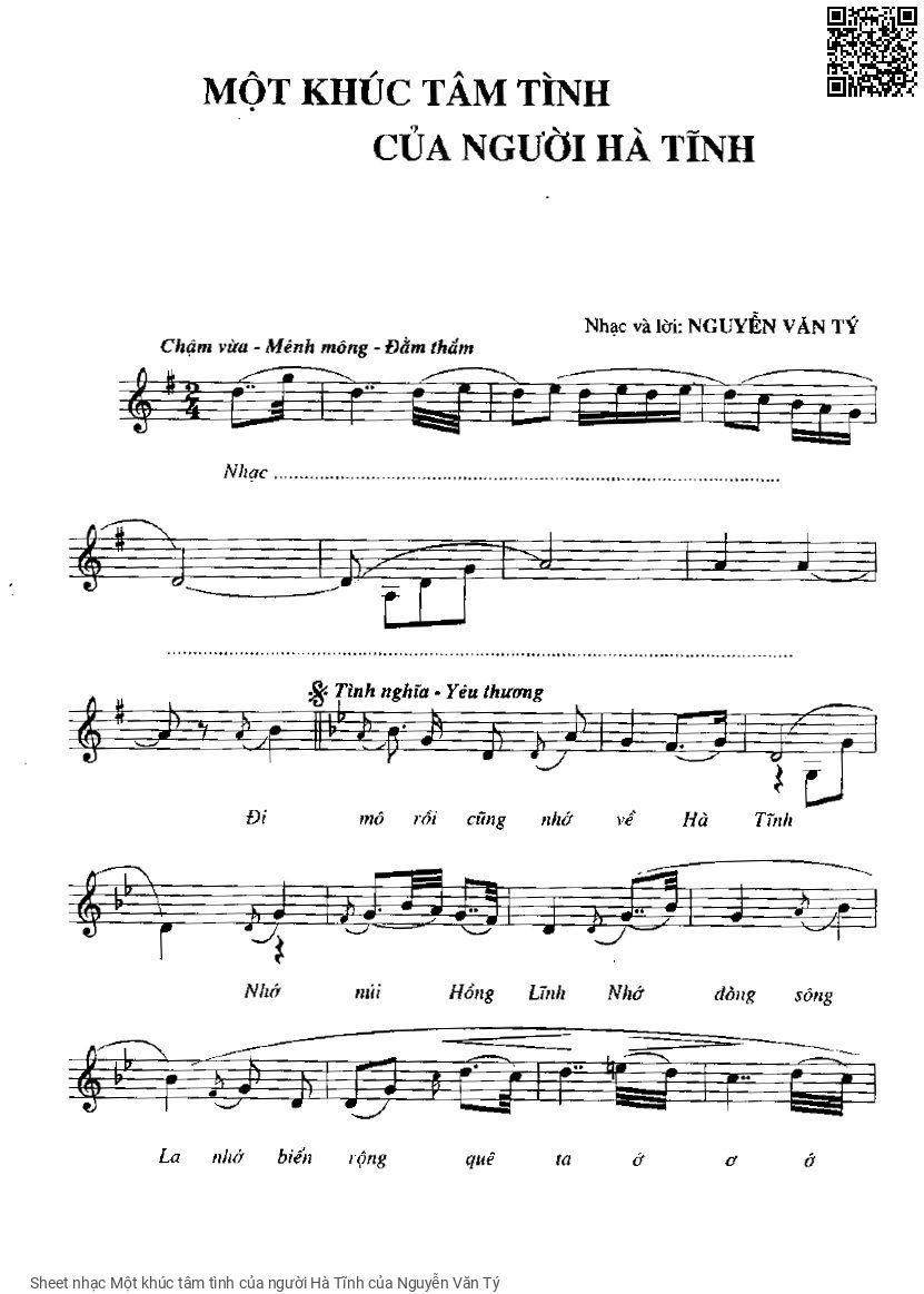 Nguyễn Văn Tý Đi mô rồi cũng nhớ về Hà Tĩnh Nhớ núi Hồng Lĩnh nhớ dòng sông La [PDF] [Sheet] [Lyrics] [Mp4/Midi]