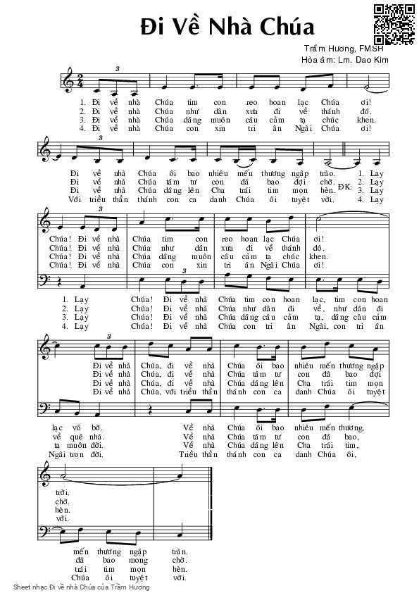 Trầm Hương Đi về nhà Chúa tim con reo hoan lạc Chúa ơi [PDF] [Sheet] [Lyrics] [Mp4/Midi]