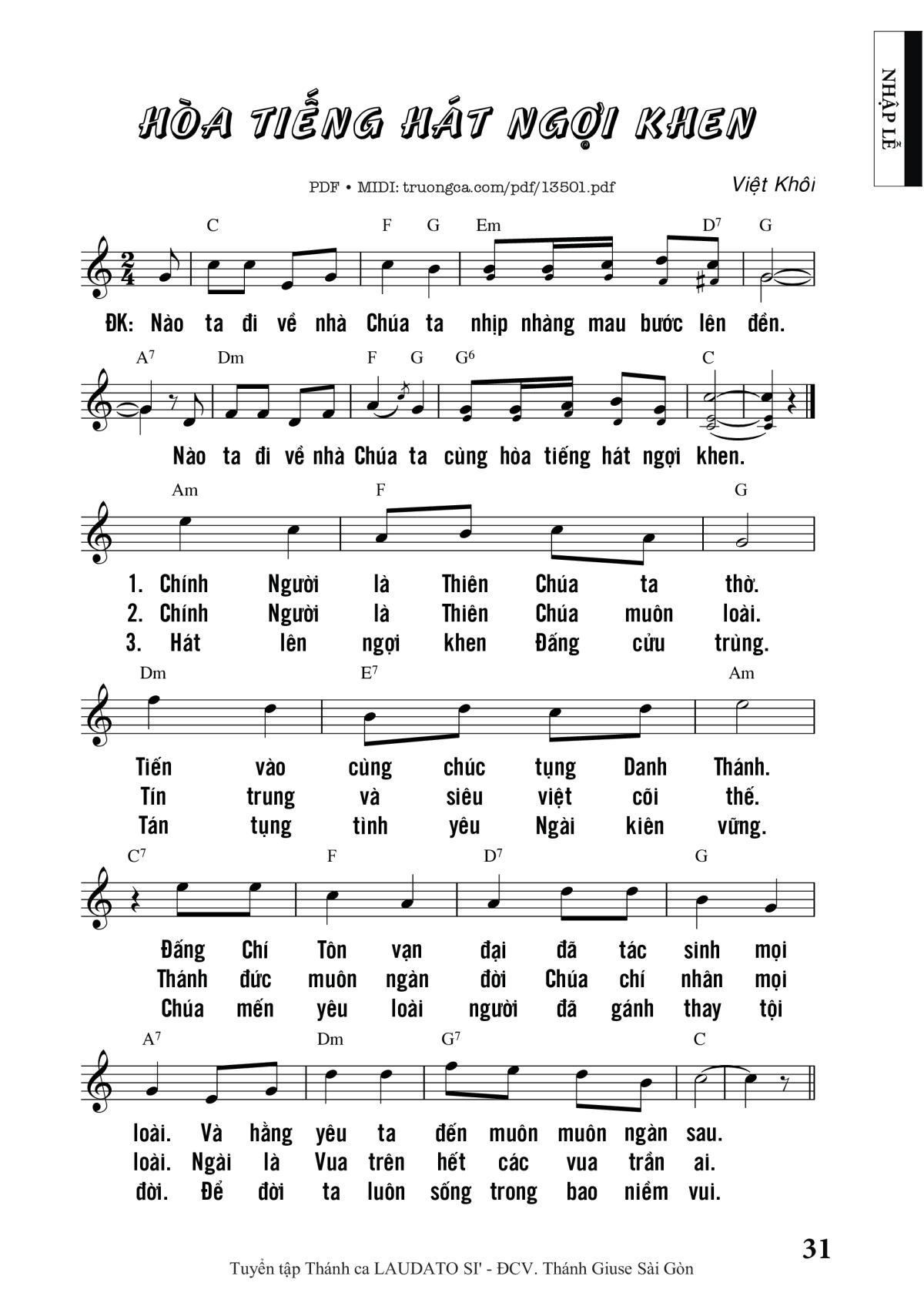 DK. Nào ta đi về nhà Chúa ta nhịp nhàng mau bước lên đền. Nào ta đi về nhà Chúa ta cùng hòa tiếng hát ngợi khen.