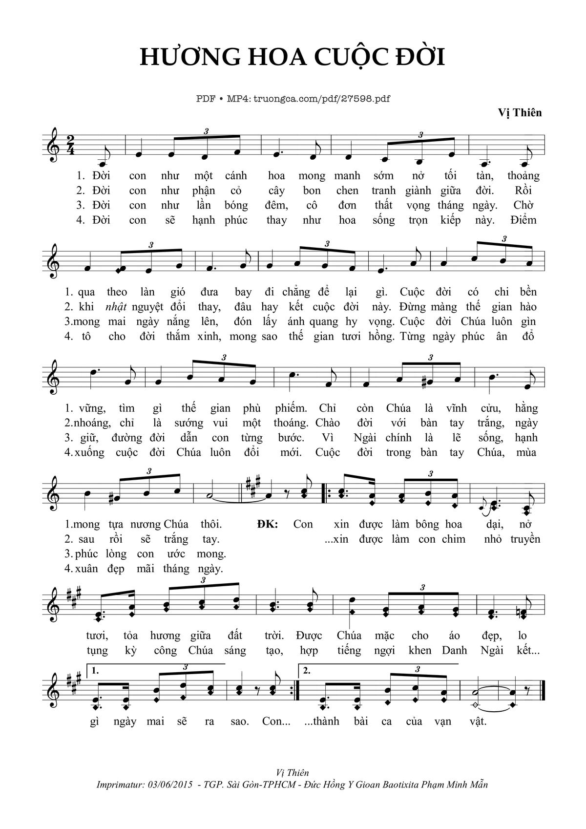 Vị Thiên Đời con như một cánh hoa mong manh sớm nở tối tàn [PDF] [Sheet] [Lyrics] [Mp4/Midi]