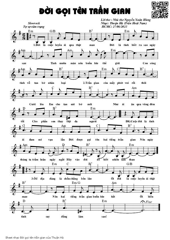 Thuận Hà Đời là cuộc luyến ái qua thật mau Đời là tình biết ra sao ngày sau [PDF] [Sheet] [Lyrics] [Mp4/Midi]