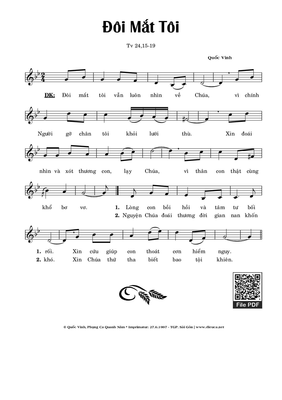 Điệp khúc: Đôi mắt tôi vẫn luôn nhìn về Chúa, vì chính Người gỡ chân tôi khỏi lưới thù.