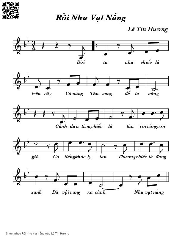 Lê Tín Hương Đời ta như chiếc lá trên cây Có nắng thu sang để lá vàng [PDF] [Sheet] [Lyrics] [Mp4/Midi]