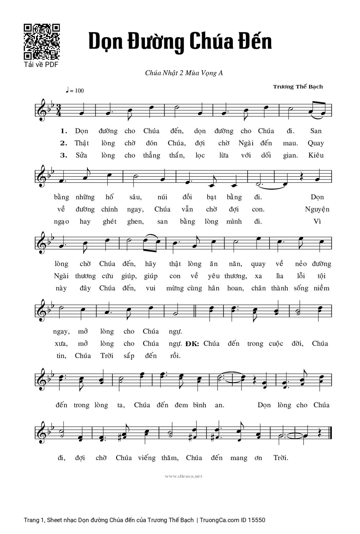 1. Dọn đường cho Chúa đến, dọn đường cho Chúa đi. San bằng những hố sâu, núi đồi bạt bằng đi. Dọn lòng chờ Chúa đến, hãy thật lòng ăn năn, quay về nẻo đường ngay, mở lòng cho Chúa ngự.