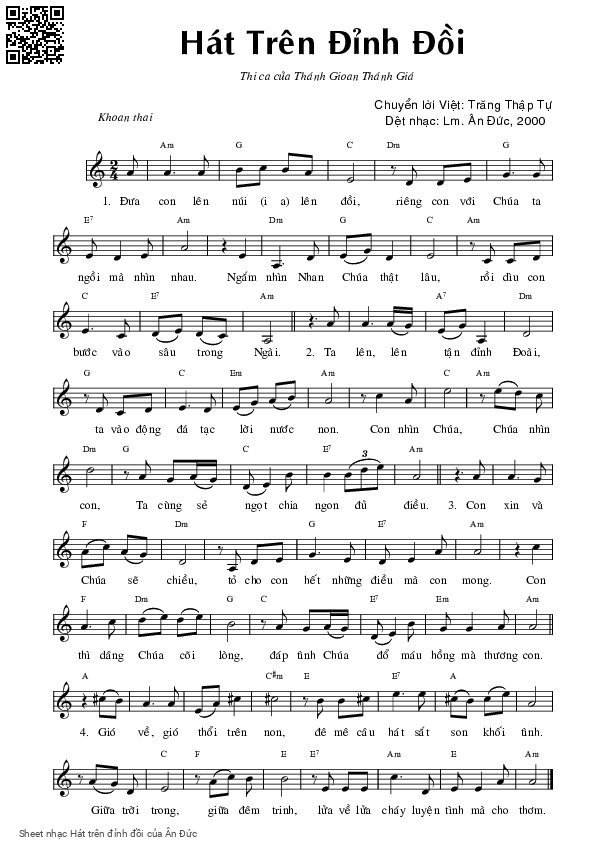 Ân Đức Đưa con lên núi í a lên đồi [PDF] [Sheet] [Lyrics] [Mp4/Midi]
