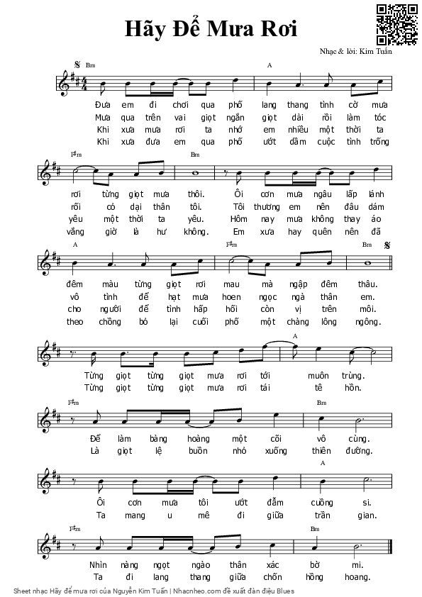 Nguyễn Kim Tuấn Đưa em rong chơi qua phố lang thang Tình cờ mưa rơi từng giọt mưa thôi [PDF] [Sheet] [Lyrics] [Mp4/Midi]