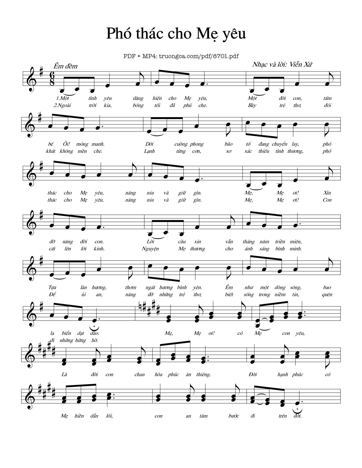 The Videos/audios Phó Thác Cho Mẹ Yêu by Viễn Xứ were embed from Youtube, Musescore or the other 3rd links. Videos are subject to 3rd's copyright control and may be removed by YouTube's copyright rules and 3rd's policies or maybe included advertisements. If you cannot access to these songs, this mean that have been removed.